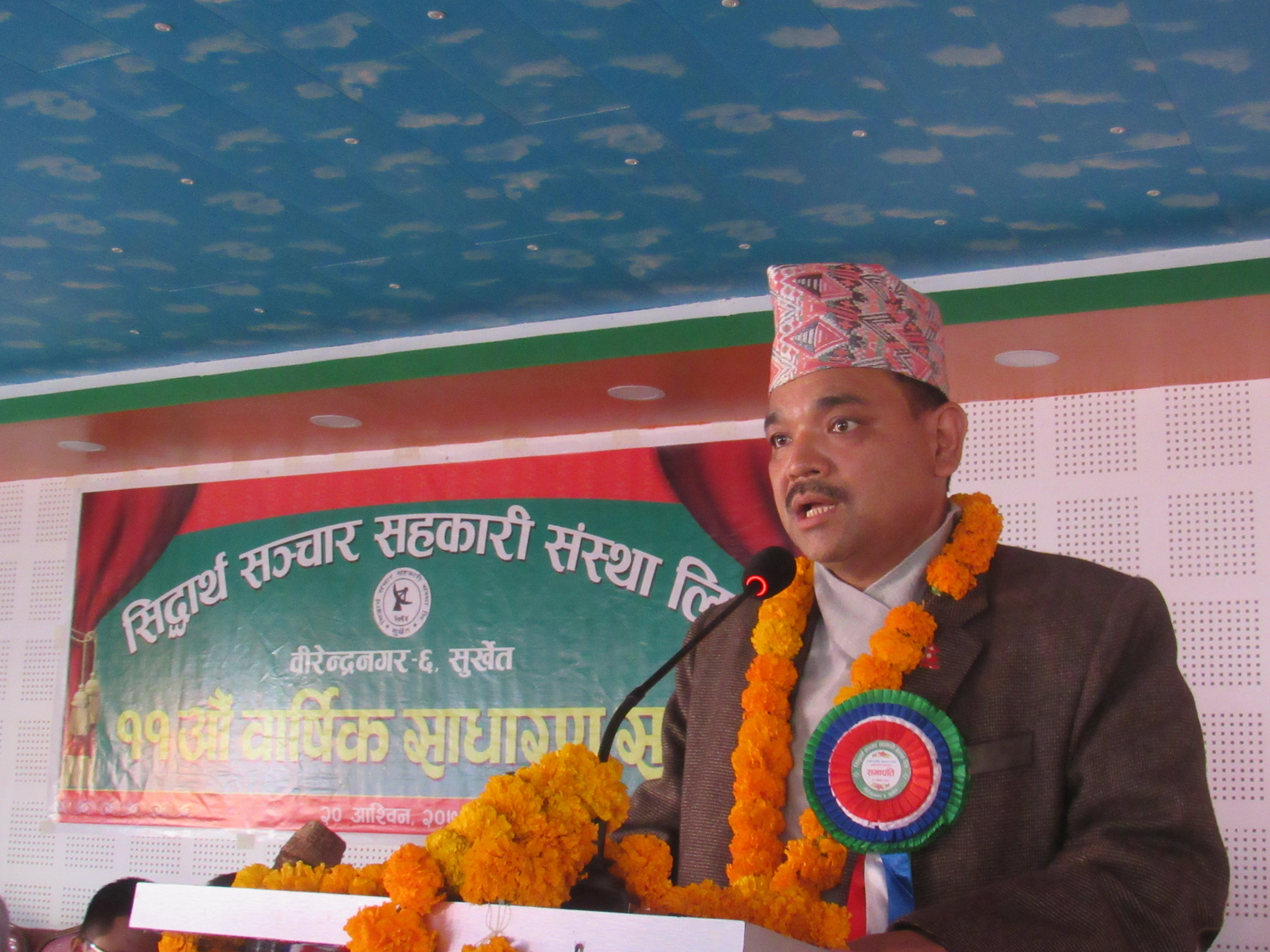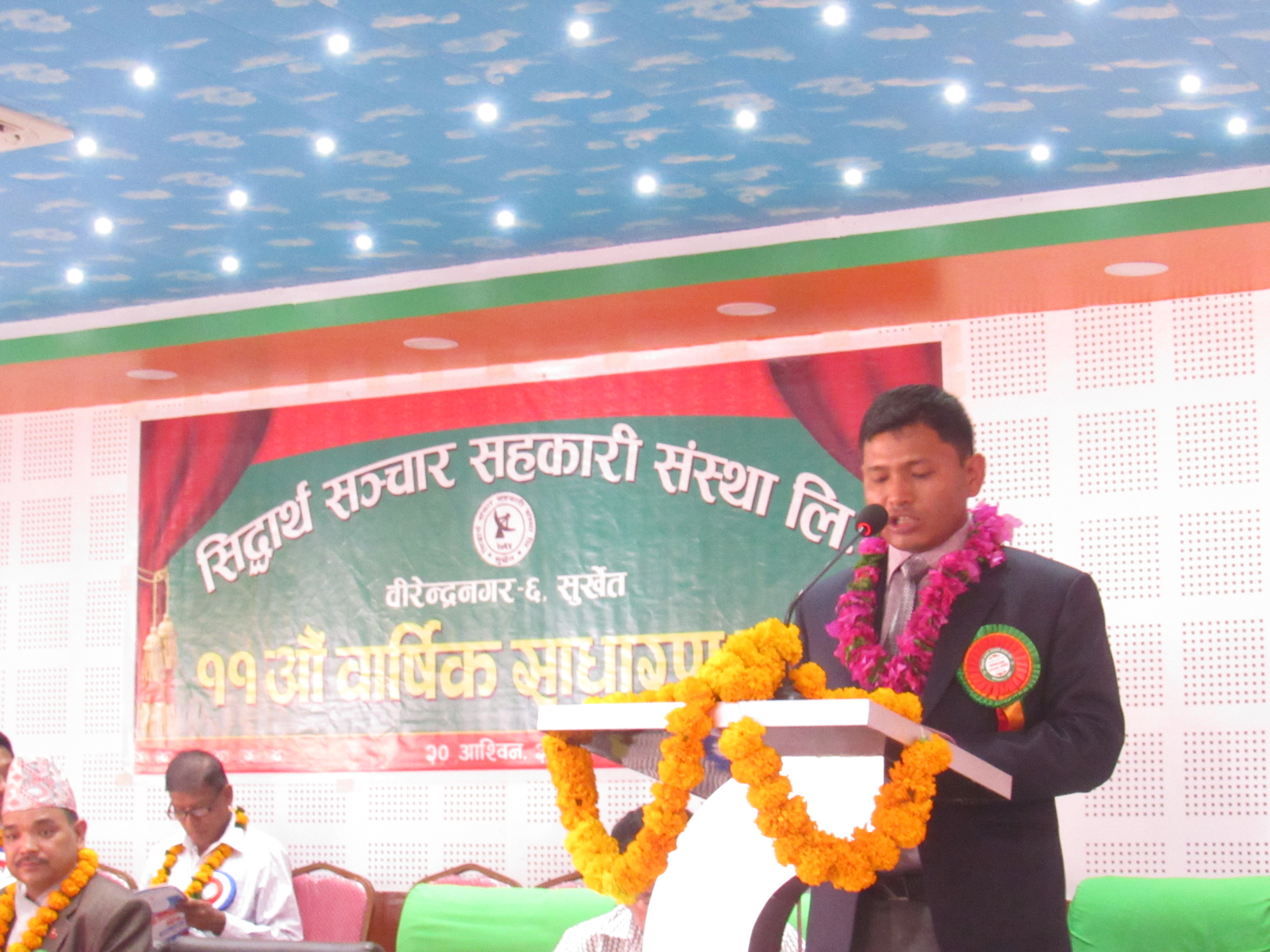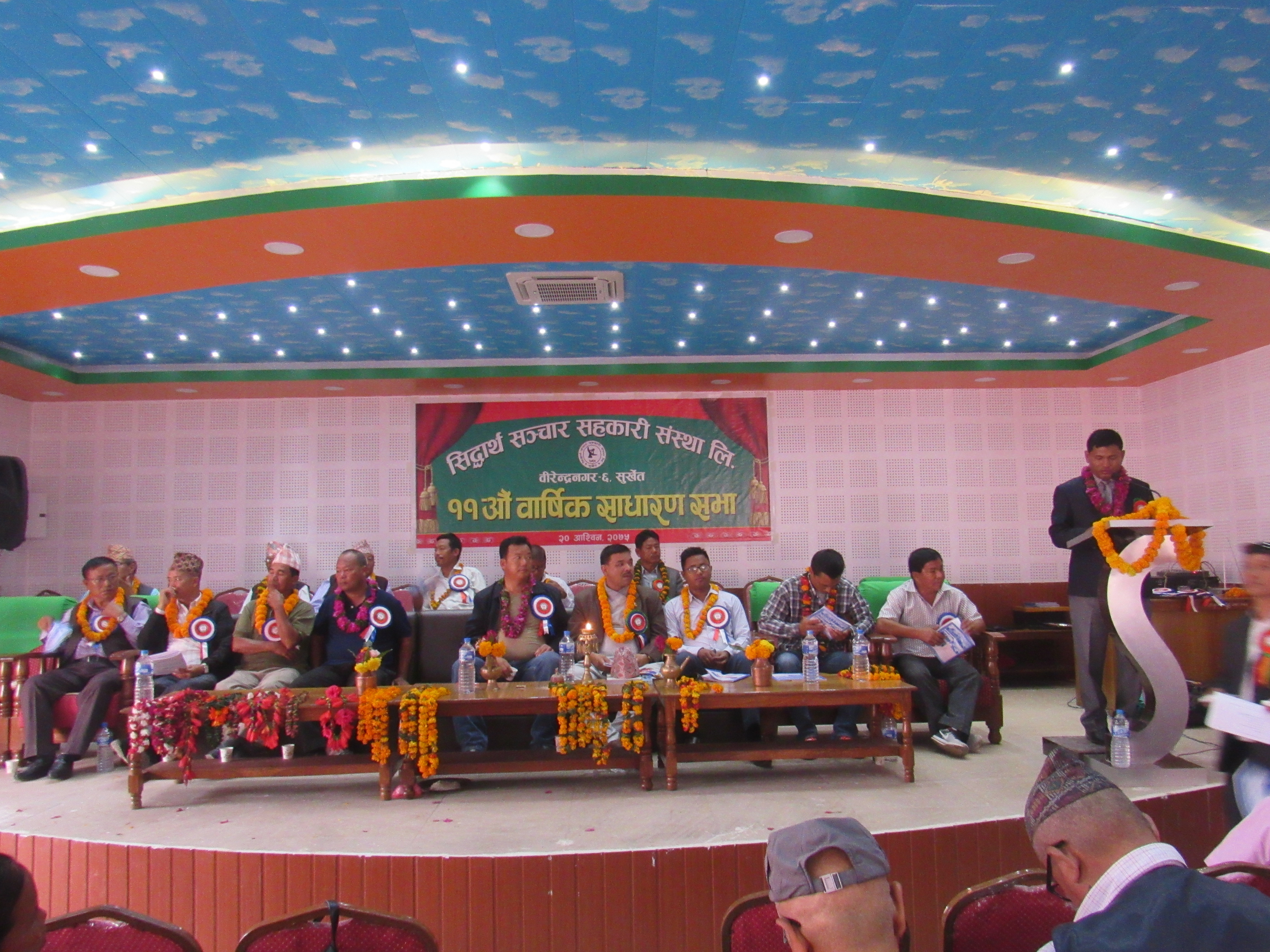 संस्थाको ११ औँ वार्षिक सभालाई सम्वोदन गर्दै कार्यक्रमका प्रमुख अतिथि जिल्ला सहकारी संघ सुर्खेतका अध्यक्ष अमृत विसीले सहकारीको माध्यामबाट सञ्चार क्षेत्रको विकास गरि यसक्षेत्रको भ्रष्टाचार विकृति र विसंगतिको उजागर गरेको भन्दै जिल्लाका ६ सय सहकारी मध्य सिद्धार्थ सञ्चार सहकारीले उत्कृष्ट र नमुना काम गदरेको बताउनु भयो । विसीले सञ्चार क्षेत्रको विकास संगै सिद्धार्थ सञ्चार सहकारी संस्थाले कर्णाली प्रदेशको आर्थिक संमृद्धिमा अग्रनिय भुमिका खेल्नु पर्नेमा समेत जोड दिनु भयो ।