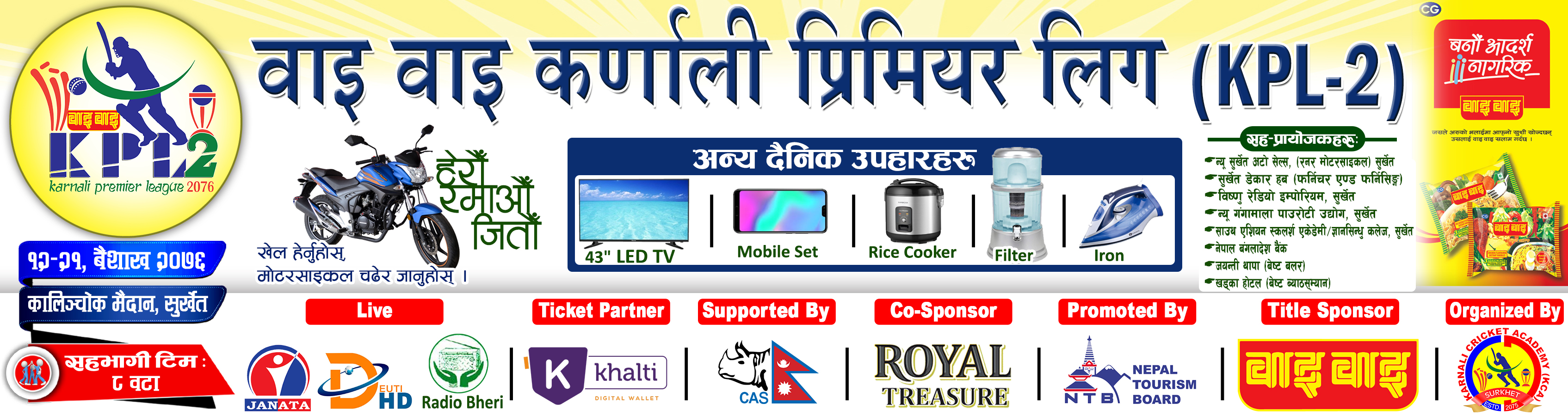 ११ बैशाख, सुर्खेत । सुर्खेतको वीरेन्द्रनगरमा भोलीबाट हुने दोस्रो संस्करण वाइवाइ कर्णाली प्रिमियर लिग केपीएल २ को उद्घाटन तयारी पूरा भएकोछ ।