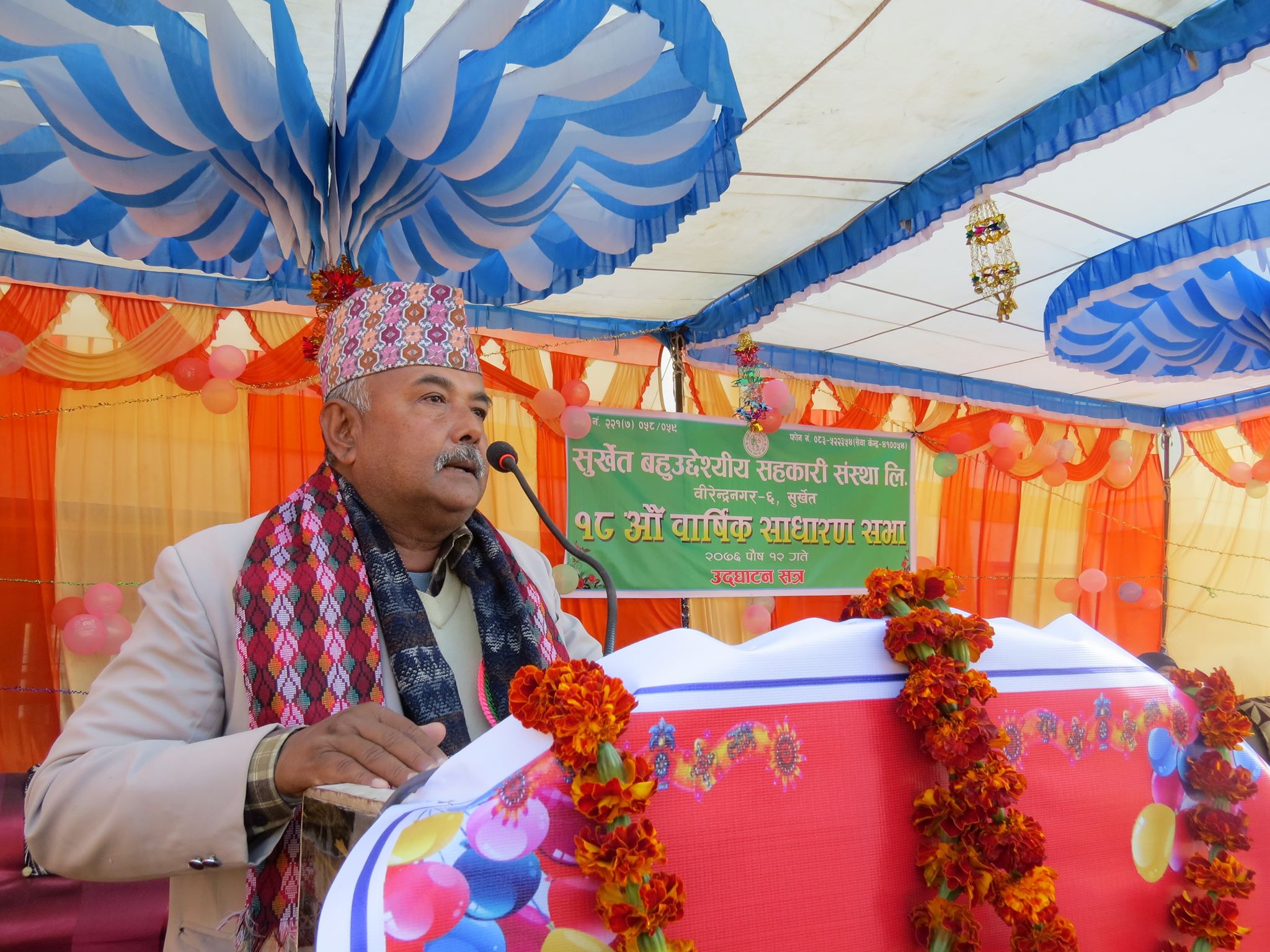 पुस,१२ सुर्खेत । सुर्खेत बहुउद्देश्यीयको सहकारी संस्थाले शनिवार(आज) सम्पन्न गरेको १८ औं बार्षिक साधारण सभामा, सभाका प्रमुख अथिती एवंम् नेपाल बहुयद्देश्यीय सहकारी संघका केन्द्रीय चन्दबहादुर थानी ले उक्त कुरा बताउनु भएको हो । प्रमुख अथिती थानीका अनुशार, कहि नभएको जात्रा हाडि गाउमा भने झै, संसारका ठुला राज्यहरु अमेरिकामा सहकारीहरुका लागी कर निती छैन र सरकारले सहकारीहरुलाई कर लगाएको छैन, यसै गरी सहकारीको क्षेत्रमा अग्रगति लिईरहेका राज्यहरु भारत र श्रीलंकामा सहकारीहरुलाई कर लाग्दैन र सहकारी क्षेत्र बाट नै उल्लेखनिय योगदान प्राप्त गरेको बंगलादेशमा त ३ प्रतिशत मात्र कर लाग्द छ भने , नेपालका सहकारीहरुले मात्र किन यती कर तिनु पर्ने ।