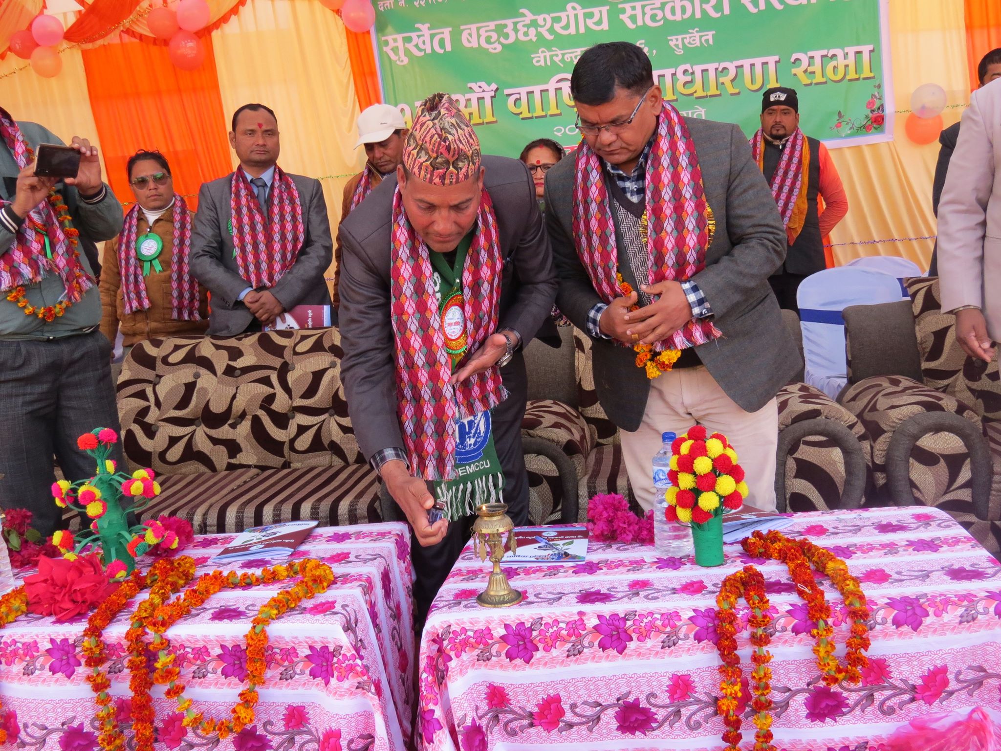 सुर्खेत बहुउद्देश्यीयको सहकारी संस्थाका अध्यक्ष गणेशकुमार बस्नेतको सभापतित्वमा सम्पन्न कार्यक्रममा, कार्यक्रमका अथितीहरु पाईनियर बहुउद्देश्यीय सहकारी संस्थाका अध्यक्ष एवंम् प्रस्ताविक कर्णाली प्रदेश सहकारी संघका बरिष्ठ उपाध्यक्ष भिमबहादुर भण्डारी, जिल्ला सहकारी संघ सुर्खेतका कार्यालय प्रमुख ढाकाराम न्यौपाने, राष्ट्रिय सहकारी बैंकका प्रतिनिधि नगेन्द्र योगी लगाएतको उपस्थित रहेको थियो ।
