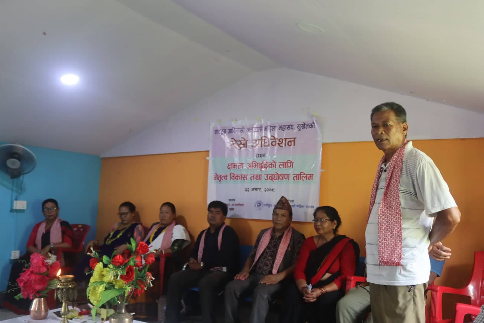 राष्ट्रिय आदिवासी जनजाति महिला महासंघ,सुर्खेतका सचिव अमृत्रा थापामगरले सहजीकरण गर्नुभएको अधिवेशनमा नेपाल आदिवासी जनजाति जिल्ला समन्वयन परिषद सुर्खेतका उपाध्यक्ष निर्मला गुरुङ्ग, नेवाः मिसा दबू सुर्खेतका अध्यक्ष उर्मिला श्रेष्ठ, कोषाध्यक्ष लक्ष्मि प्रधान(सिया), कमला श्रेष्ठ लगायतको उपस्थित रहेको थियो ।