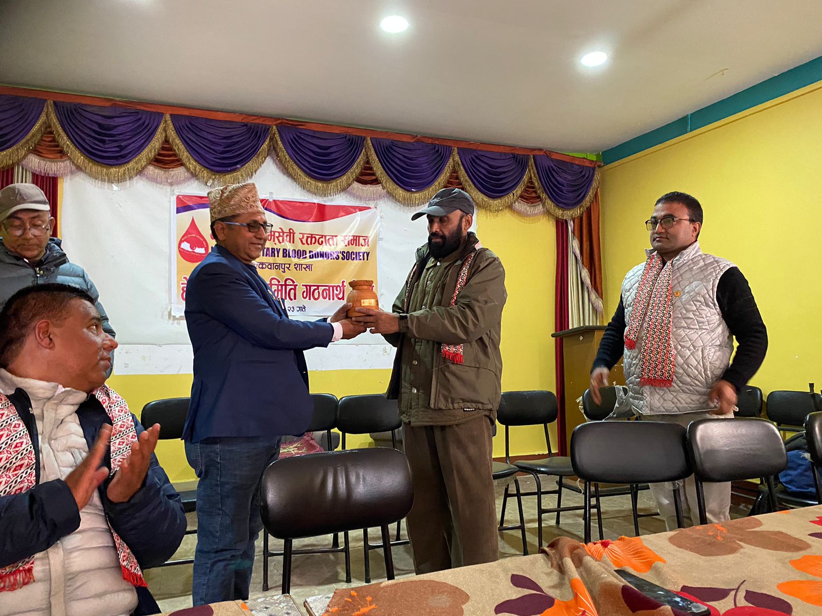 नेपाल स्वयंसेवी रक्तदाता समाज मकवानपुर जिल्ला शाखा अध्यक्ष सुरेन्द्रमान प्रधानले नव गठित पदाधिकारीहरुलाई शपथ ग्रहण गराउंनु भएको थियोे । कार्यक्रममा नेपाल स्वयंसेवी रक्तदाता समाज हेटाैंडा नगर समितिकाे तर्फबाट अध्यक्ष पूर्णप्रसाद अर्यालद्वारा प्रमुख अतिथि र सभापतिलाई मायाकाे चिनाे स्वरूप ठेकी उपहार दिनुभएको थियो ।