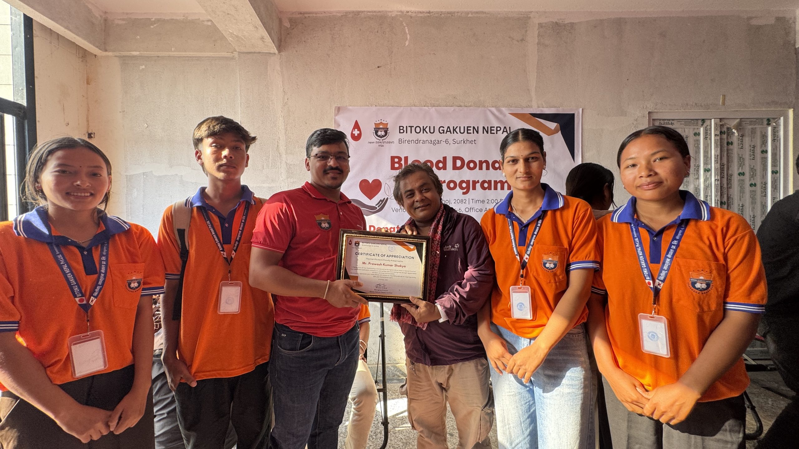 वितोकु गाकुएन नेपालका प्रवन्ध निर्देशक एवं दुर्लभ समूहका स्वयंसेवी रक्तदाता भुवन खरालले केही दिन यता रगतको अभाव भएको खबर पाएपछि आफ्नो प्रशिक्षण केन्द्रमा अध्ययन गर्ने विद्यार्थीहरुबाट रक्तदान गराएको बताउनुभयो । उहाँले भन्नुभयो “रगत अभावको खबर सुनेका थियौ अनी समाजिक सञ्जाल फेसबुकको समूह मोटे ग्याङ्ग नेपालका एडमिन कुमार शम्सेर थापाको सहयोगमा अध्ययनरत विद्यार्थीबाट रक्तदान गर्न लगाएका हौं ।”