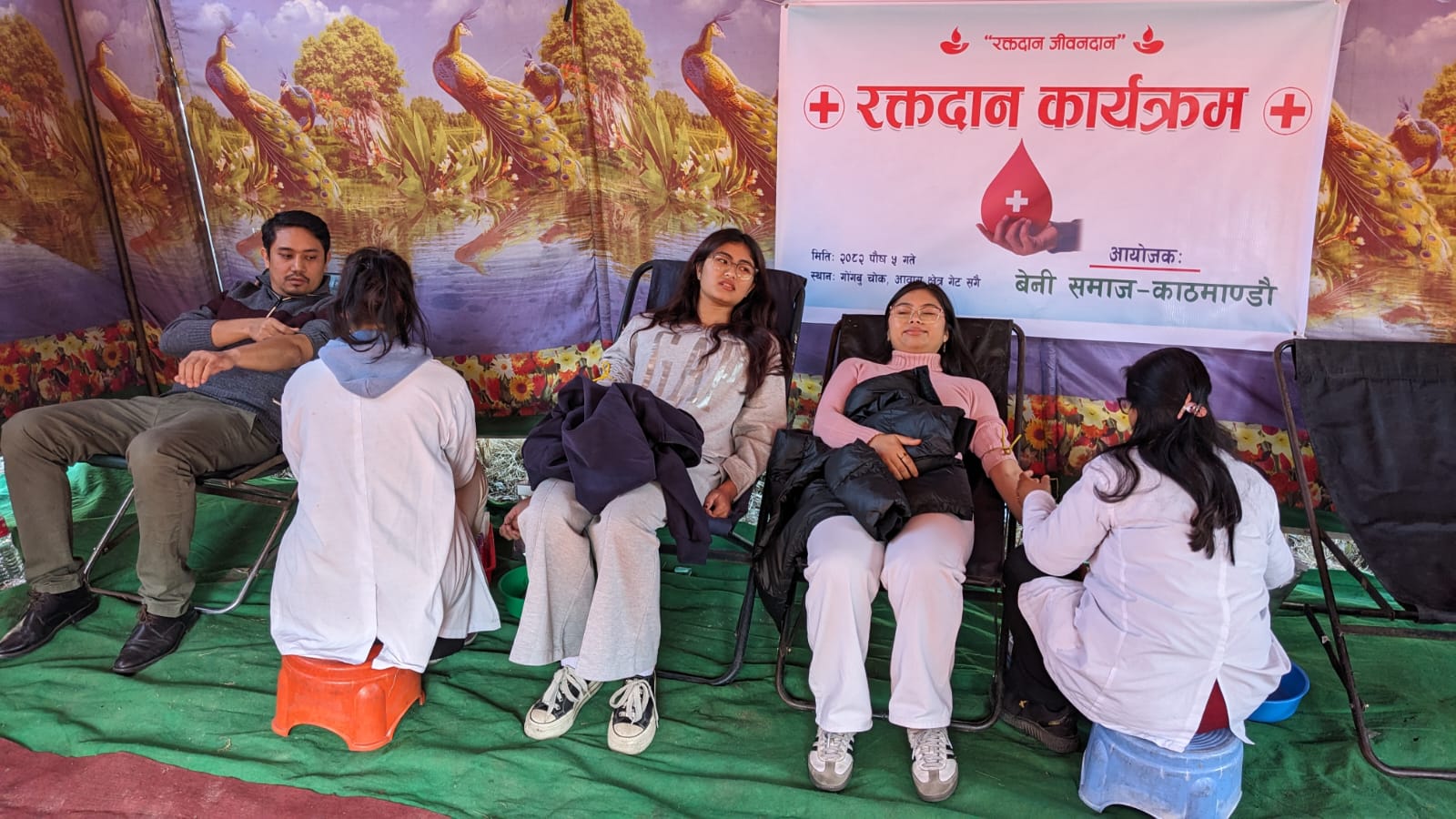 बेनी समाज काठमाडौंका अध्यक्ष प्रदीप श्रेष्ठको सभापतित्वमा सम्पन्न उक्त रक्तदान कार्यक्रममा महिला तथा पुरुष गरी जम्मा ७१ जनाले रक्तदान गरेका थिए । रक्तदान गर्ने स्वयंसेवी रक्तदाताहरूलाई प्रमुख अतिथि कर्माचार्यले प्रशंसा–पत्र प्रदान गर्दै सामाजिक सेवामा योगदान पुर्याएकोमा धन्यवाद ज्ञापन गर्नुभएको थियो ।