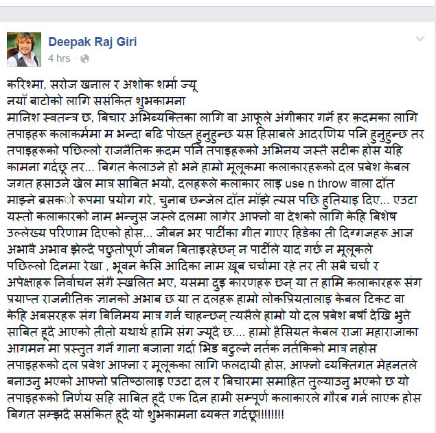 गिरीले लेखेको फेसबुक स्ट्याटस जस्ताको तस्तै साभार :